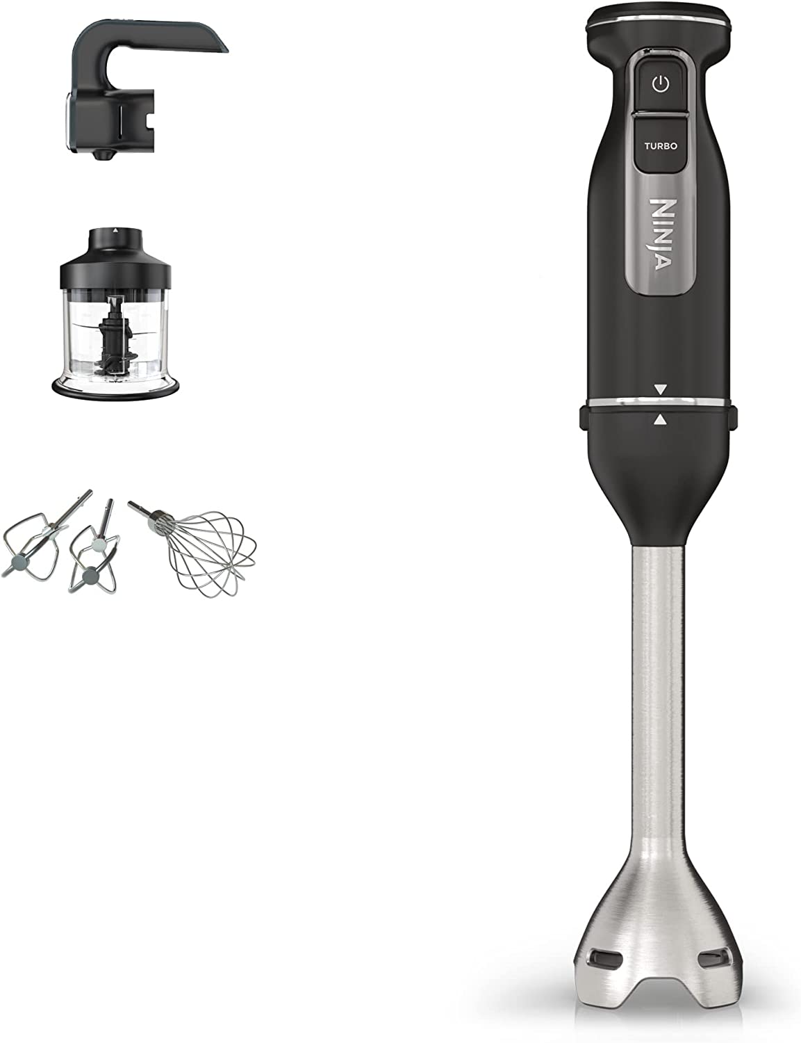 مخلوط کن دستی ۳ در ۱ نینجا فودی، میکسر و خردکن دستی [CI100UK] 850 وات، مشکی. ۱ قدرت پایه ۳ دستگاه: برای هم زدن، مخلوط کردن، مخلوط کردن و خرد کردن بدون زحمت، بین ضمیمه های مخلوط کن دستی، میکسر دستی و خرد کن جابه جا شوید. موتور گشتاور هوشمند از طریق مخلوط های ضخیم قدرت می گیرد. کنترل سرعت متغیر: ۲ سرعت مخلوط کردن، ۵ سرعت اختلاط و توربو. شروع تدریجی از پاشیدن جلوگیری می کند. استفاده آسان: مواد را در حین مخلوط کردن با پایه موتور مستقل با وزن یکنواخت اضافه کنید. دکمه خارج کردن هندزفری. تمیز کردن آسان با لوازم جانبی قابل شستشو در ماشین ظرفشویی شامل: POWERBASE 850W با سیم ۱.۵ متری، اتصال دستی مخلوط کن، اتصال دستی میکسر، بالون ویسک، ۲ عدد کوبنده،