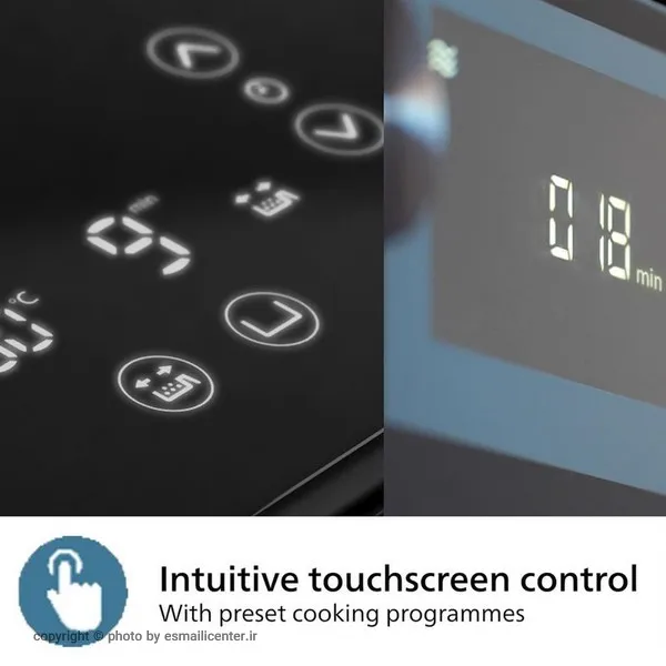 قسمت سقف بدنه صفحه نمایشگر جذاب با دکمه های لمسی طراحی شده که با یک نگاه به آن می توانید به راحتی تنظیمات دستگاه را انجام دهید. قطعات سرخ کن بدون روغن دوقلو فیلیپس مدل NA350 به راحتی قابل جدا شدن و شستشوی بدون زحمت در ماشین ظرفشویی هستند.