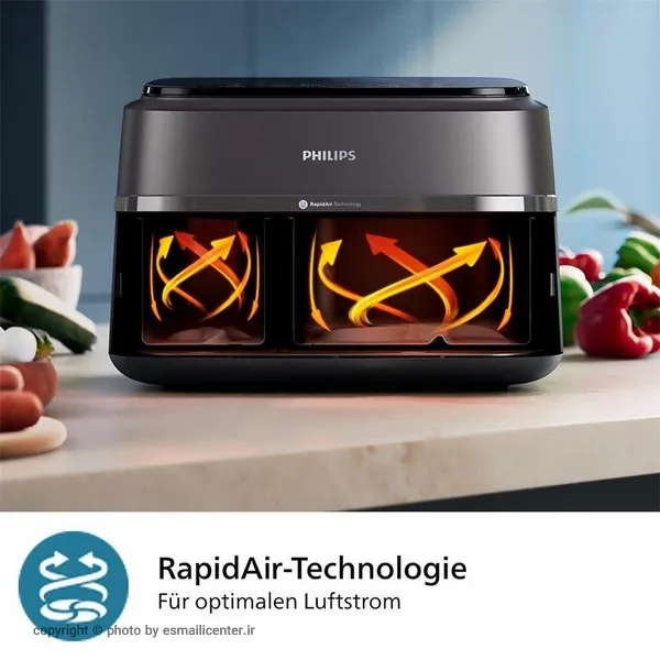 از آنجایی که این سرخ کن دارای دو محفظه پخت بوده می توان درون هر محفظه مواد غذایی یکسان یا متفاوت را قرار داده و آماده کرد. زمان های پخت را به طور خودکار در ۲ کشو همگام سازی کنید تا هر دو غذای شما با هم آماده سرو شوند. سیستم خاموش شدن خودکار موجب شده تا بعد از پخت غذا، دستگاه خاموش گردد و احتمال سوختن به شدت کاهش یابد.
